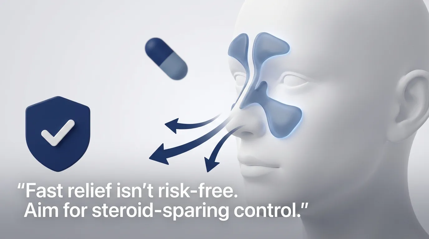 This is why many CRS/CRSwNP reviews emphasize steroid-sparing approaches whenever feasible. (Current Opinion in Otolaryngology & Head and Neck Surgery, 2018; Journal of Clinical Medicine/MDPI, 2018)